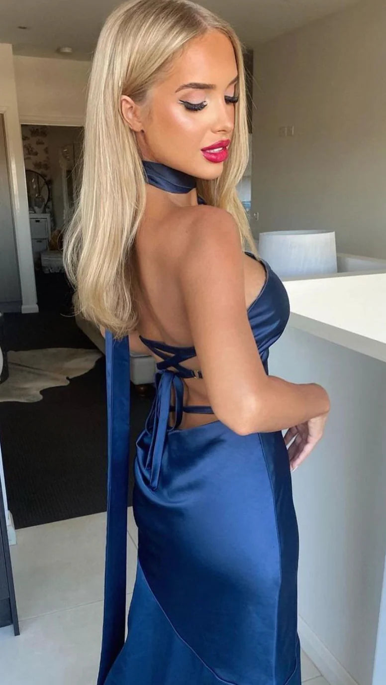 The ultimate evening wear look, designed with a self lined bodice that features delicate ruching and a lace up back. Cut on the bias for a flattering body skimming fit with our signature low cowl back. Sewn in with gold fastenings, the skirt is designed with the option to wear low on the hip or high waisted. Made from a lustrous silky satin that shapes your curves, Angelina is the definition of evening wear glamour.