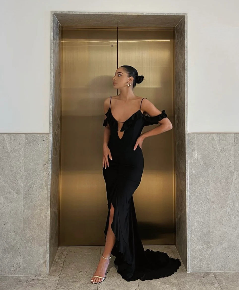 Dance the night away in CARMELLA. This ruffled beauty is none other than a statement piece.
