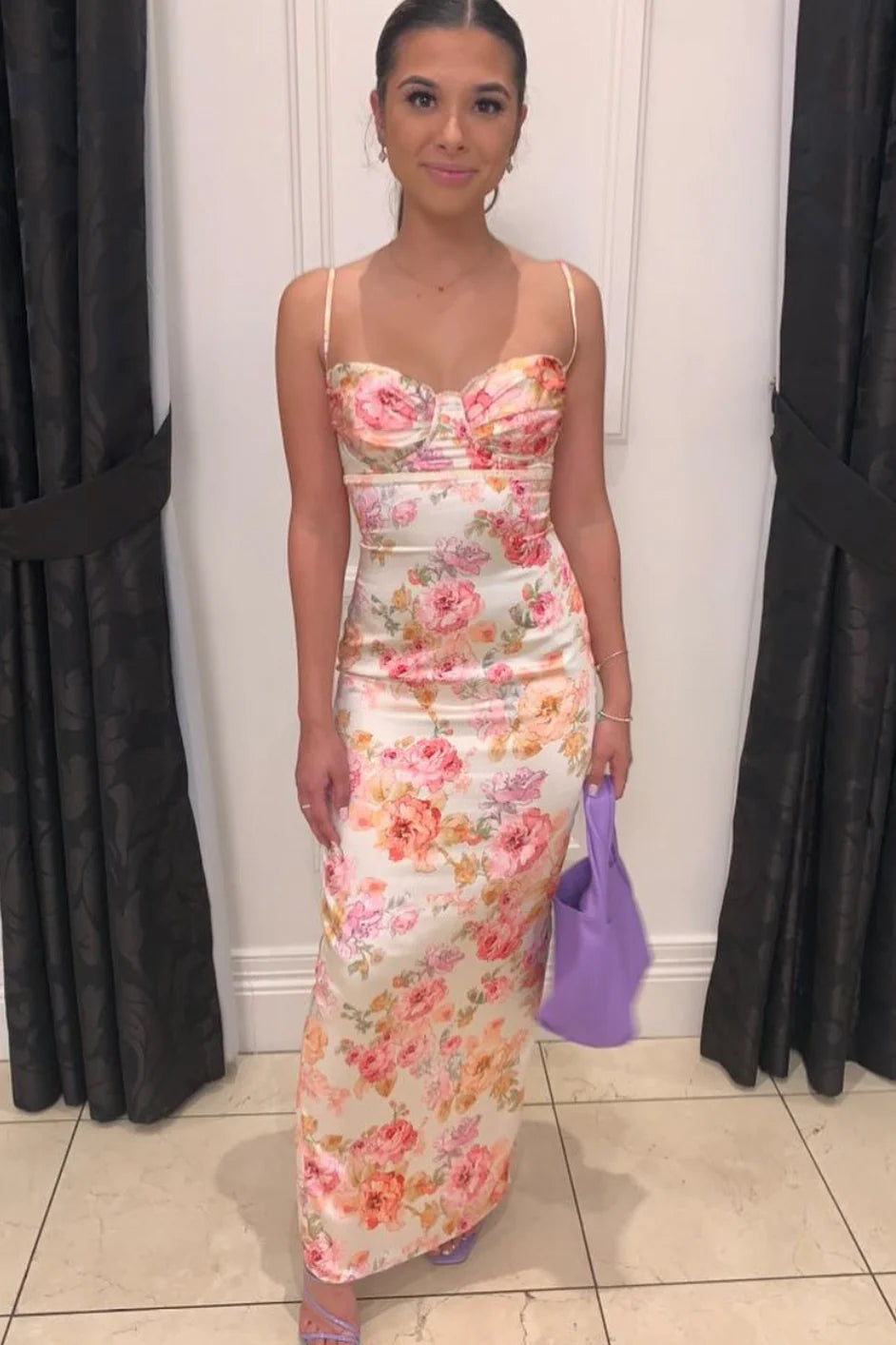 Pretty florals and elegant silhouettes are what we're loving for Spring and 'Josefina' is so feminine. Cut from our luxurious stretch sheen satin, it has a pretty floral print with a romantic lace trim that makes this beautiful creation even more feminine. The underwired cups lift and flatter the bust and the shoulder straps adjust for the perfect fit.