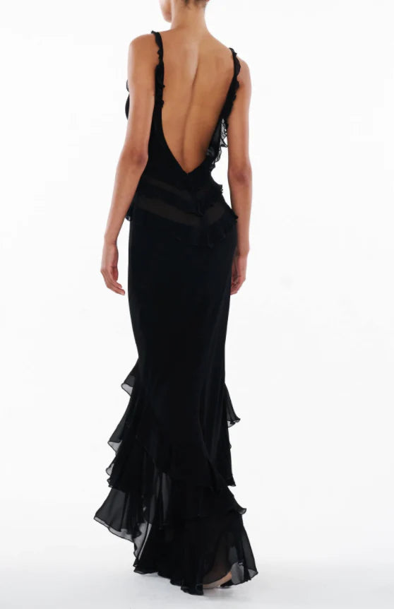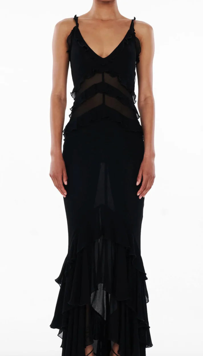 An embodiment of chic and luxury with stunning frill accents, elevate your style and embrace your allure in the Saphira dress.