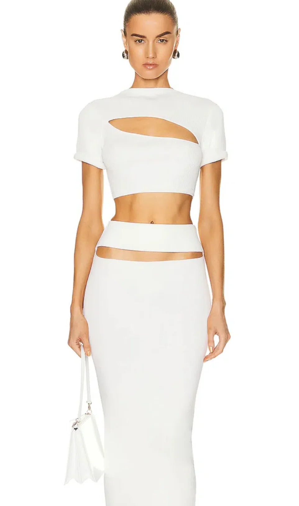Christopher Esber Slashed Cut Out Top and Ribbed Cut Out Midi Set White Size 8