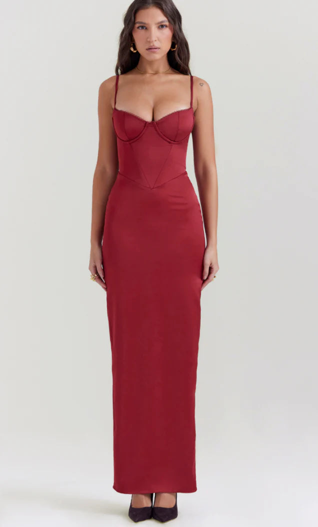 'Stefania' is so striking and the very definition of effortless elegance. It's cut from our lustrous sheen black satin and cut on the bias to gently skim your figure. The structured bodice features our incredible corsetry boning to cinch the figure in and the pretty lace trimmed cups are softly lined and underwired for full support and uplift, framed by delicate shoulder straps to adjust for the perfect fit.