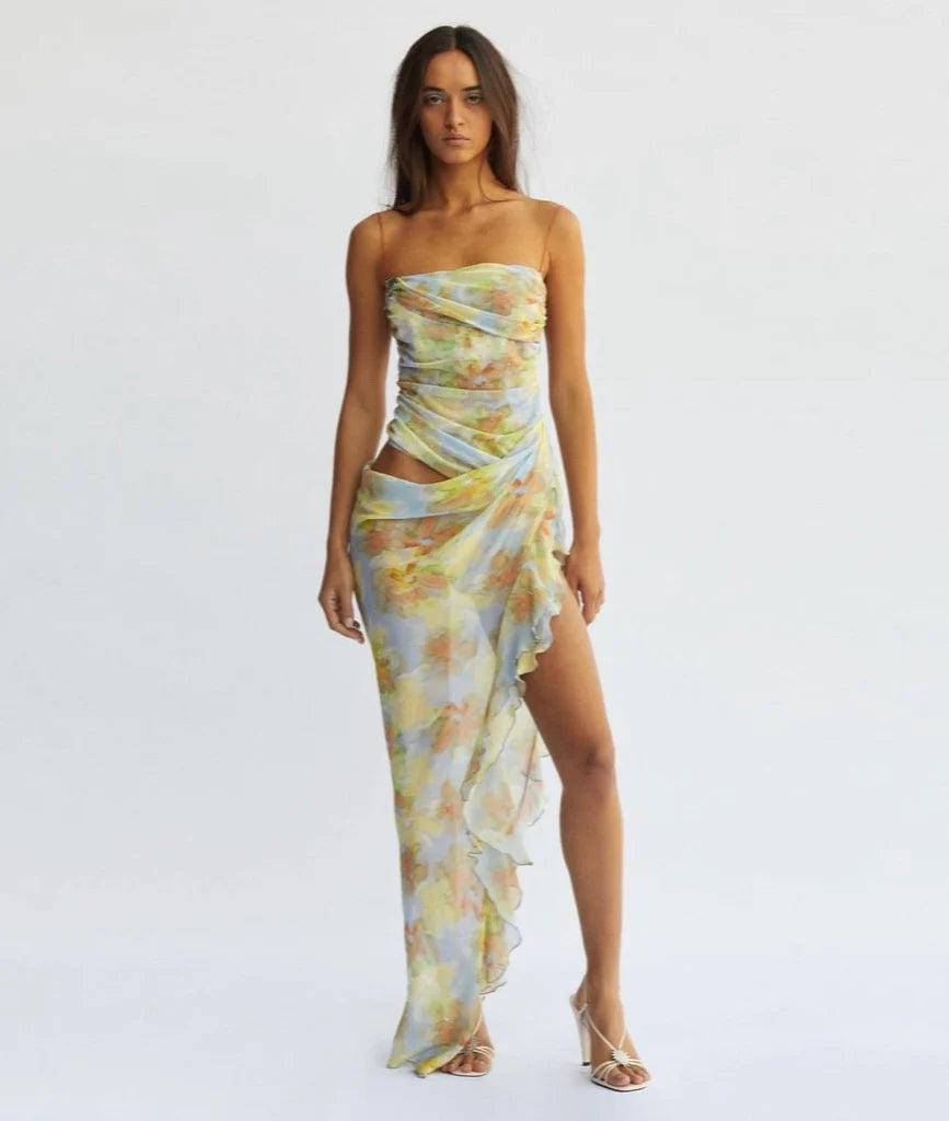 Make a statement in the Zephy Asym Dress in Blue Blossom.